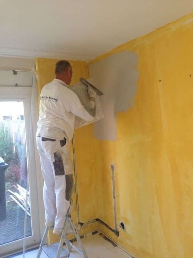 Gert-Jan heeft perfect werk afgeleverd. Het plafond in deze badkamer bestond uit verschillende hoeken en hoogtes. Ondanks de krappe ruimte waarin Gert-Jan zijn werk moest doen is het stucwerk zeer strak geworden.